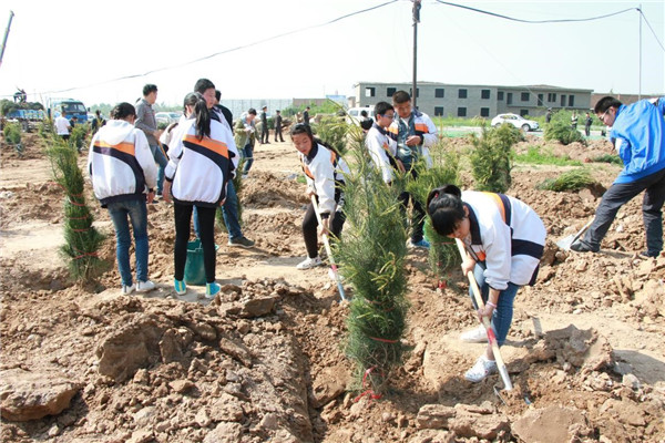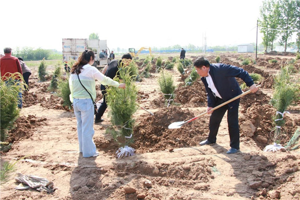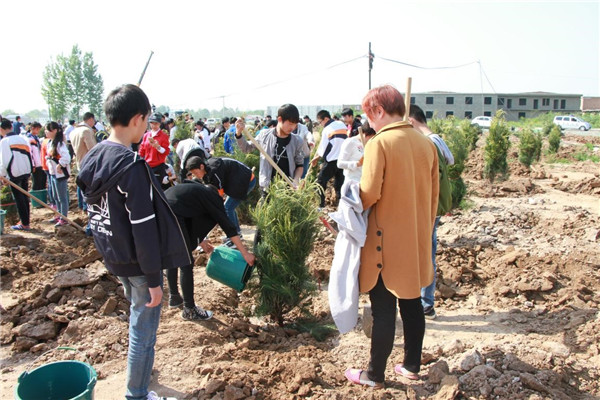 上午9:30分,植樹活動正式開始。高莊鎮(zhèn)政府相關干部、基泰集團全體人員與師生們一起揮動鐵鍬培土,提水澆灌樹木,一片忙碌景象。經(jīng)過一上午的辛勤勞動,近三百棵雪松整整齊齊的屹立在壽平村的土地上。盡管當天氣溫有點高,但是高不過每一個參與者的熱情,當大家看著自己親手種下的樹苗亭亭玉立于眼前時,所有的汗水和勞累都被拋之腦后,換來的無盡的欣慰和歡聲笑語。