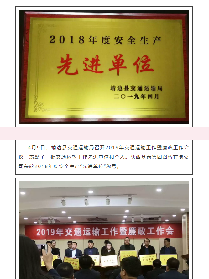基泰路橋榮獲2018年度安全生產(chǎn)先進單位
