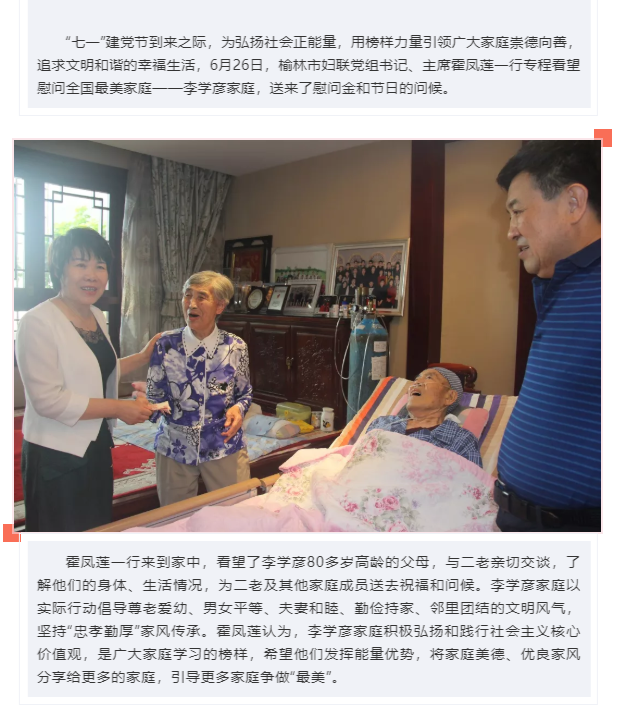 霍鳳蓮到李學彥家庭走訪慰問