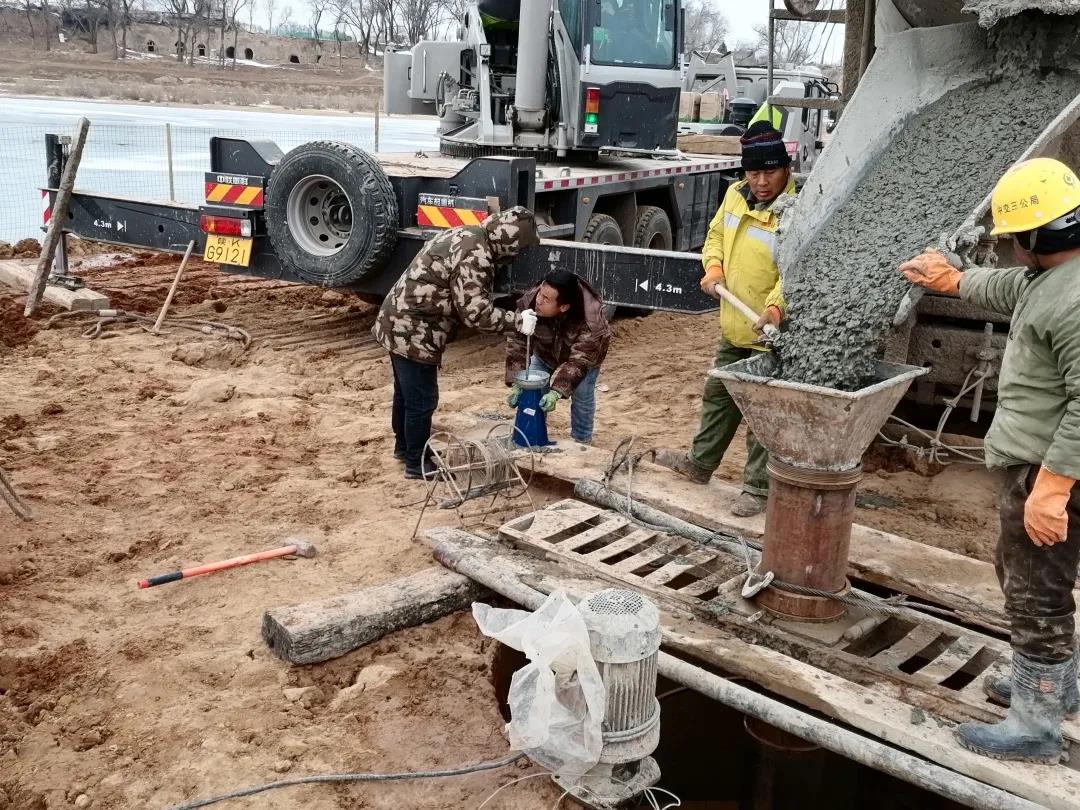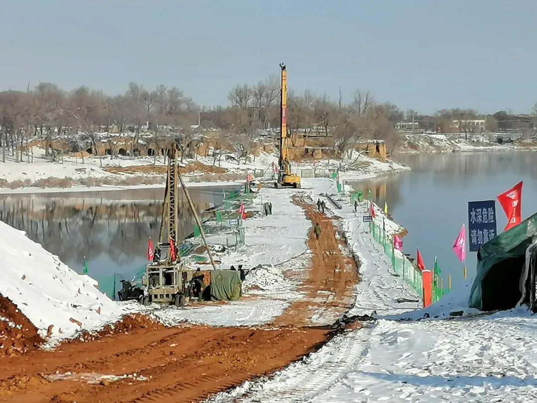 楊家灣水庫大橋樁基,最大水深6米,地質(zhì)條件非常復(fù)雜,施工處于冬季施工、最低氣溫低至﹣20℃,施工人員不懼嚴(yán)寒、創(chuàng)新施工工藝,合理緊湊安排施工工序,僅用35天時(shí)間全部完成了該橋樁基施工,為明年施工贏得了更多時(shí)間。