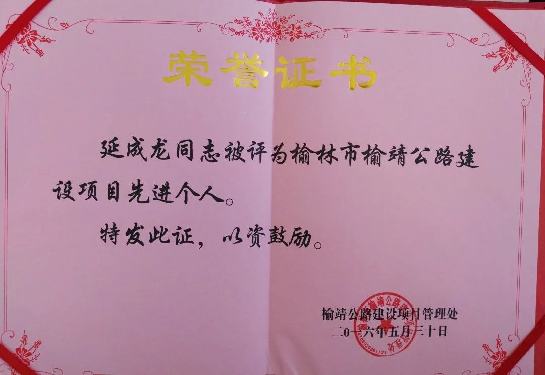 在2014年建設完成的榆林市環(huán)城北路榆溪河大橋,地形復雜,施工難度大,延成龍和他的團隊攻克了大跨徑橋梁和市政管網工程施工的多項技術難題,被榆林市評為平安工地示范工程,公司獲得“質量管理先進單位”的榮譽。