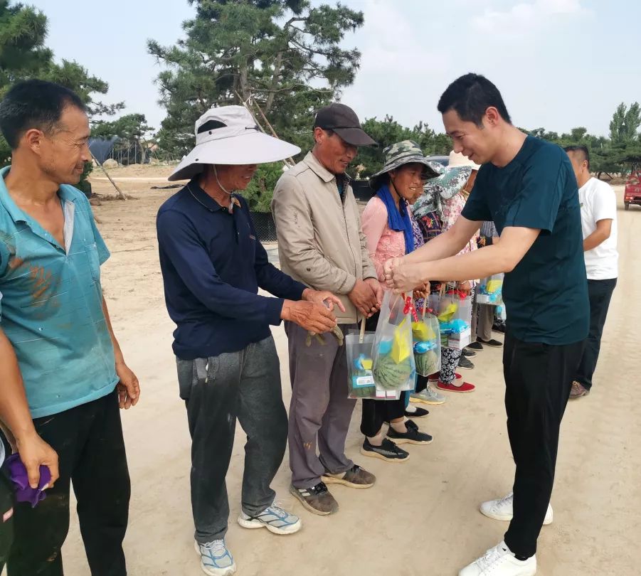 7月16日,基泰都市新農(nóng)業(yè)總經(jīng)理李亞龍帶隊(duì)先后到農(nóng)業(yè)園區(qū)、市政工程施工現(xiàn)場(chǎng)、綠化項(xiàng)目養(yǎng)護(hù)一線,為現(xiàn)場(chǎng)工作人員送去西瓜、白糖、菊花茶、藿香正氣水、風(fēng)油精等防暑降溫大禮包,用心的關(guān)愛(ài)如一絲清涼沁人心脾。