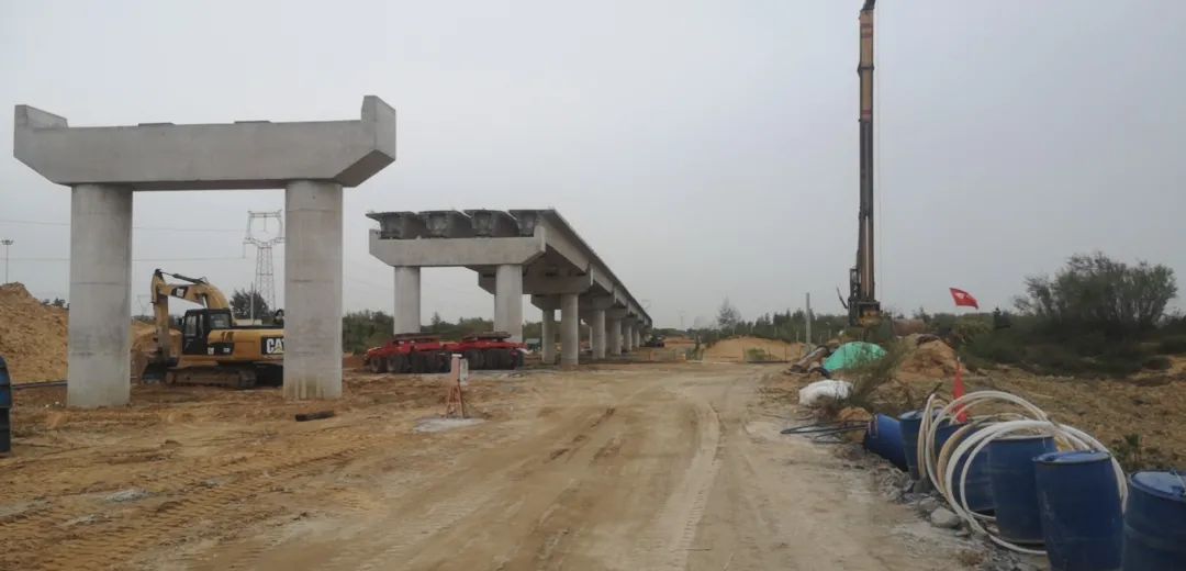 截止目前,項(xiàng)目建設(shè)已完成樁基30根、系梁11道、承臺(tái)2座、墩柱22根、蓋梁11座、臺(tái)帽2座、箱梁預(yù)制52片、箱梁安裝24片。下一步,計(jì)劃完成剩余6跨箱梁安裝、橋面鋪裝、橋頭引道土方及路面工程。