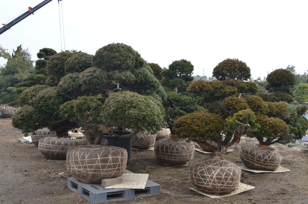 為研究珍稀苗木品種繁育、造型技術(shù)以及景觀方面的實(shí)際運(yùn)用,基泰綠色生態(tài)發(fā)展研究院于2021年5月從日本引進(jìn)69株造型枷羅木。目前枷羅木長勢良好,樹木存活率較高。