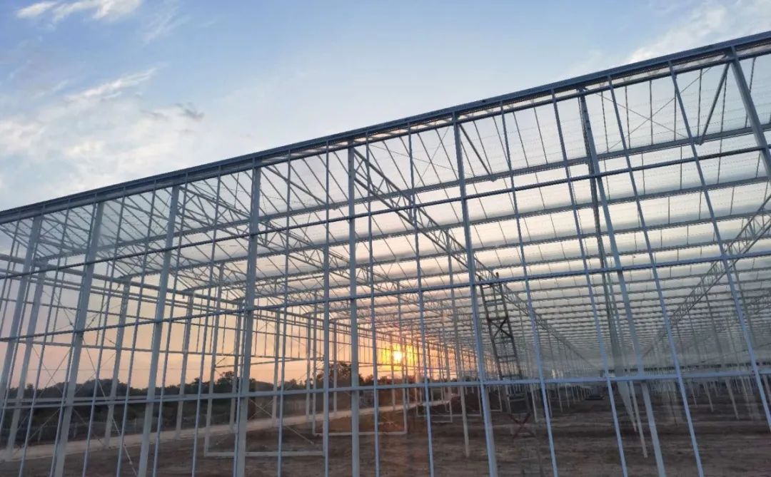截止目前,玫瑰鮮切花溫室30720㎡和紅掌鮮切花溫室19668㎡主體結(jié)構(gòu)、頂部及立面玻璃覆蓋、三層網(wǎng)托壓幕線、暖通工程及給排水工程地下管網(wǎng)、CO2補充系統(tǒng)等已完成安裝,溫室頂開窗傳動系統(tǒng)完成80%、內(nèi)遮陽內(nèi)保溫鋼纜驅(qū)動系統(tǒng)完成70%。玫瑰溫室半封閉結(jié)構(gòu),紅掌溫室濕簾及負(fù)壓風(fēng)機等已完成安裝。